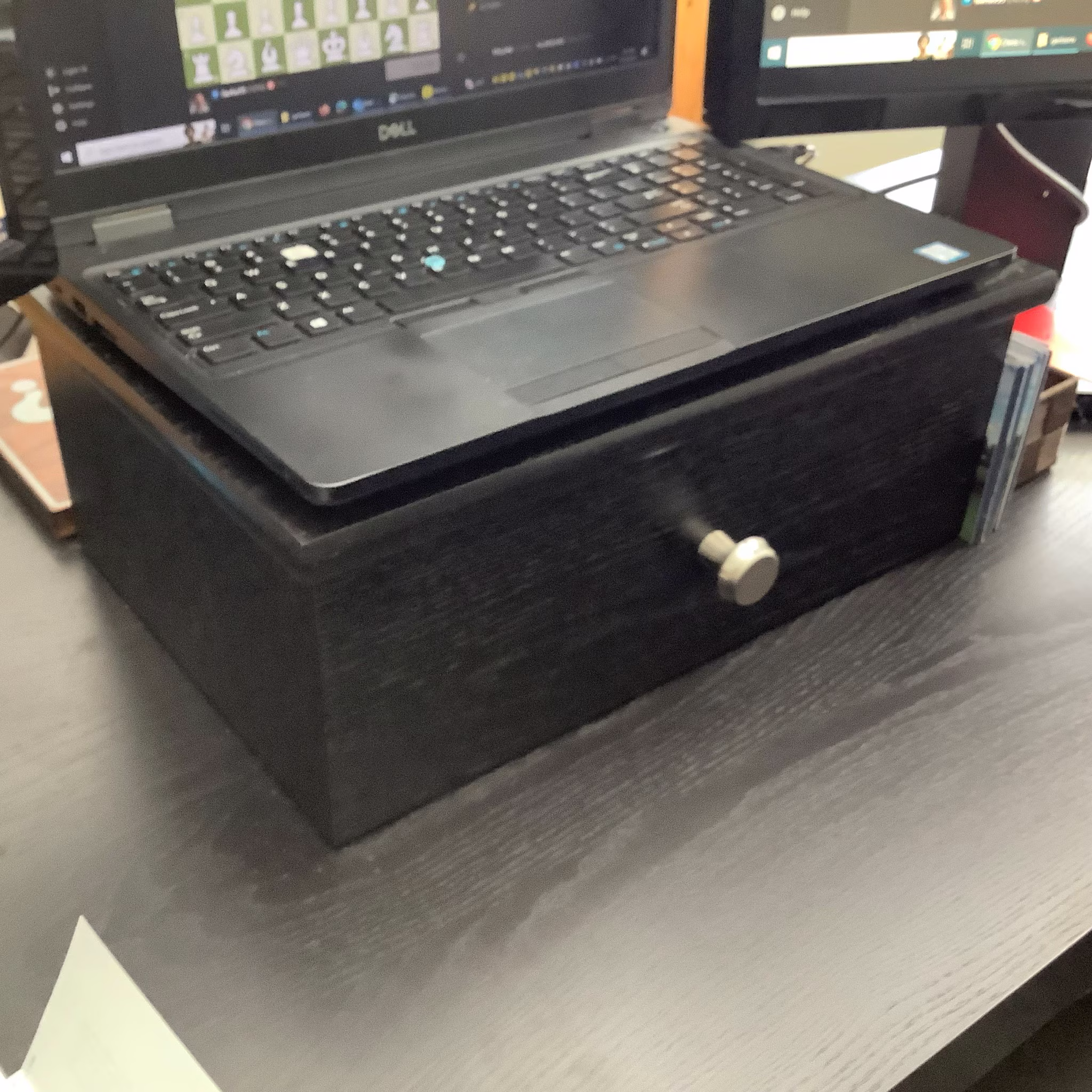 I designed the stand in Sketchup, with a number of people sneaking into Bill’s office to take measurements of his notebook and computer setup so that I could get the dimensions right.