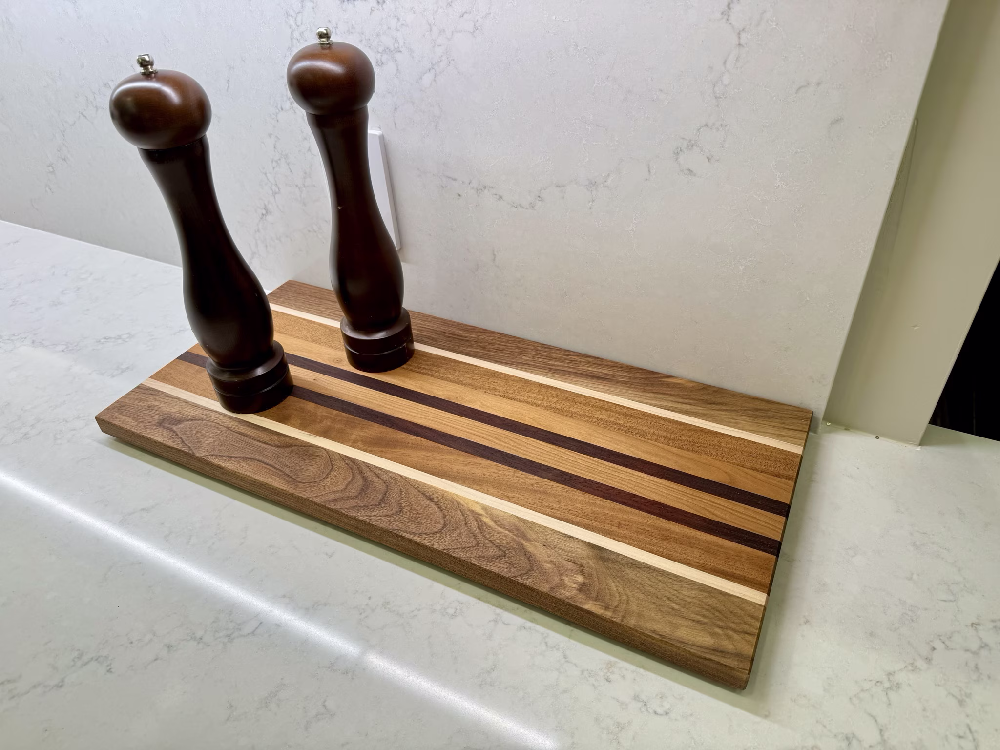 The thing that makes these look cool is the different woods, and the contrast between them. It has walnut, maple, Sapele, Mahogany, and Padauk. If you are really into the wood types, I have included a way-too-detailed description of each of them below that I pulled from various sources.