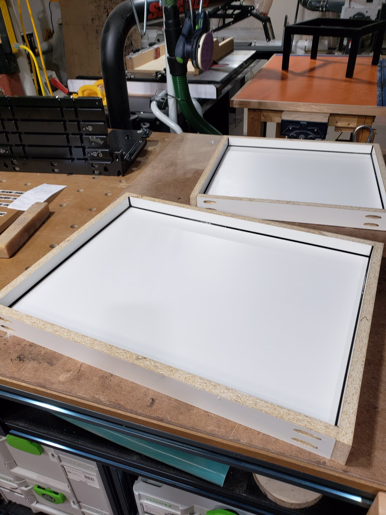 The black colouring makes it easier to remove when you are done. Made from spare melamine I had from some old shelving.