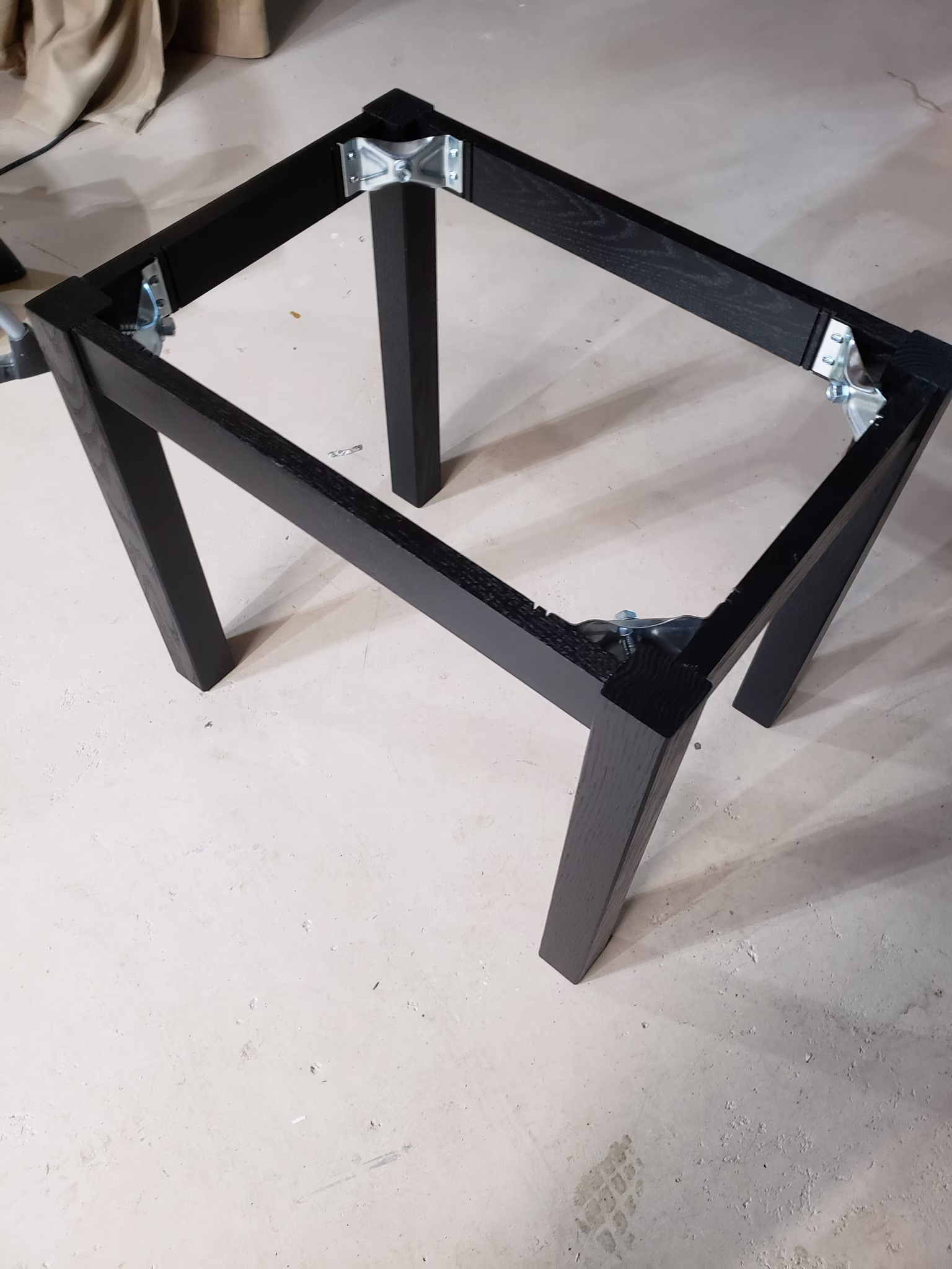 Standard leg with an apron. Only tricky part here is that I made the apron extra beefy, and put brackets in there for added strength. The extra strength is needed at the top, as these are nested tables, you cannot put any stretchers further down on the legs for extra support.