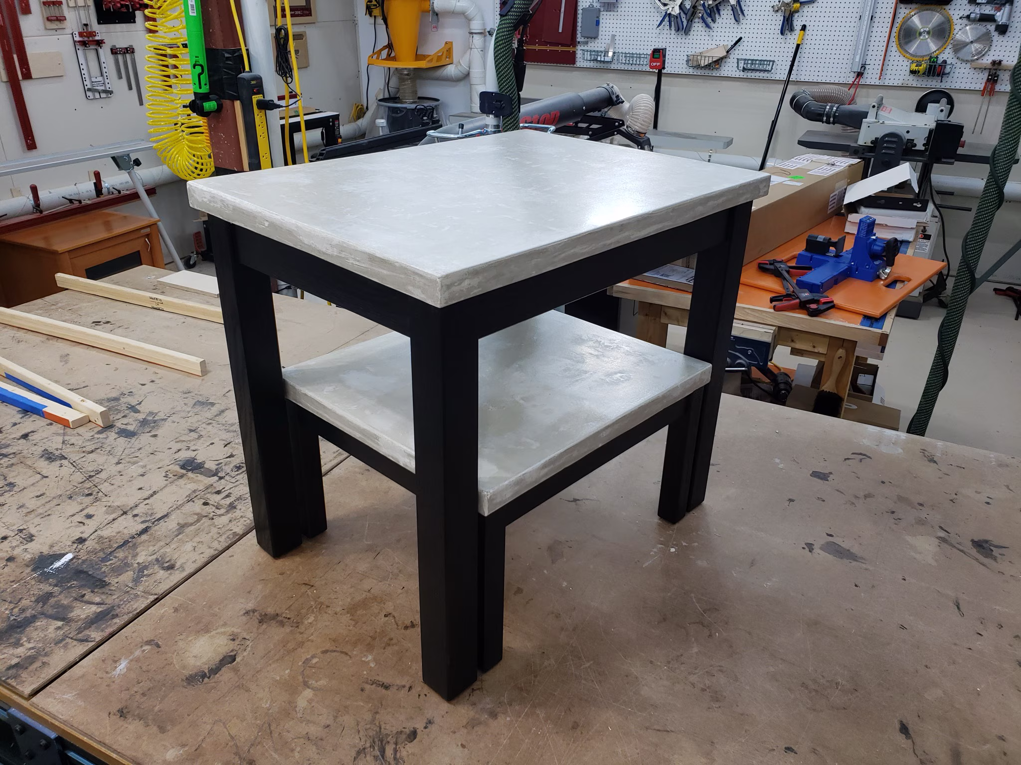 I tried something very new with these concrete nested end tables. It ended up in the right place, but it was a bit of a bear to get it there. Working with concrete is very different than working with wood. That might sound obvious but it needs to be said. And my artistic skill with the materials were novice at best. Details below.