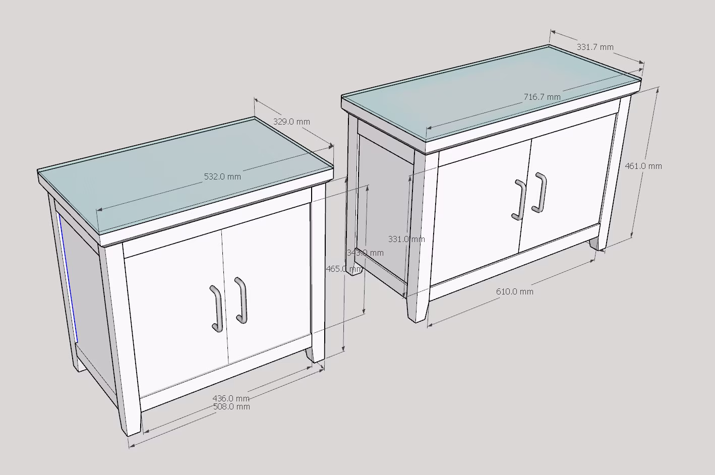I did a couple of layouts of the table in Sketchup, just to get a feel for things. We went with the wider version on the right.