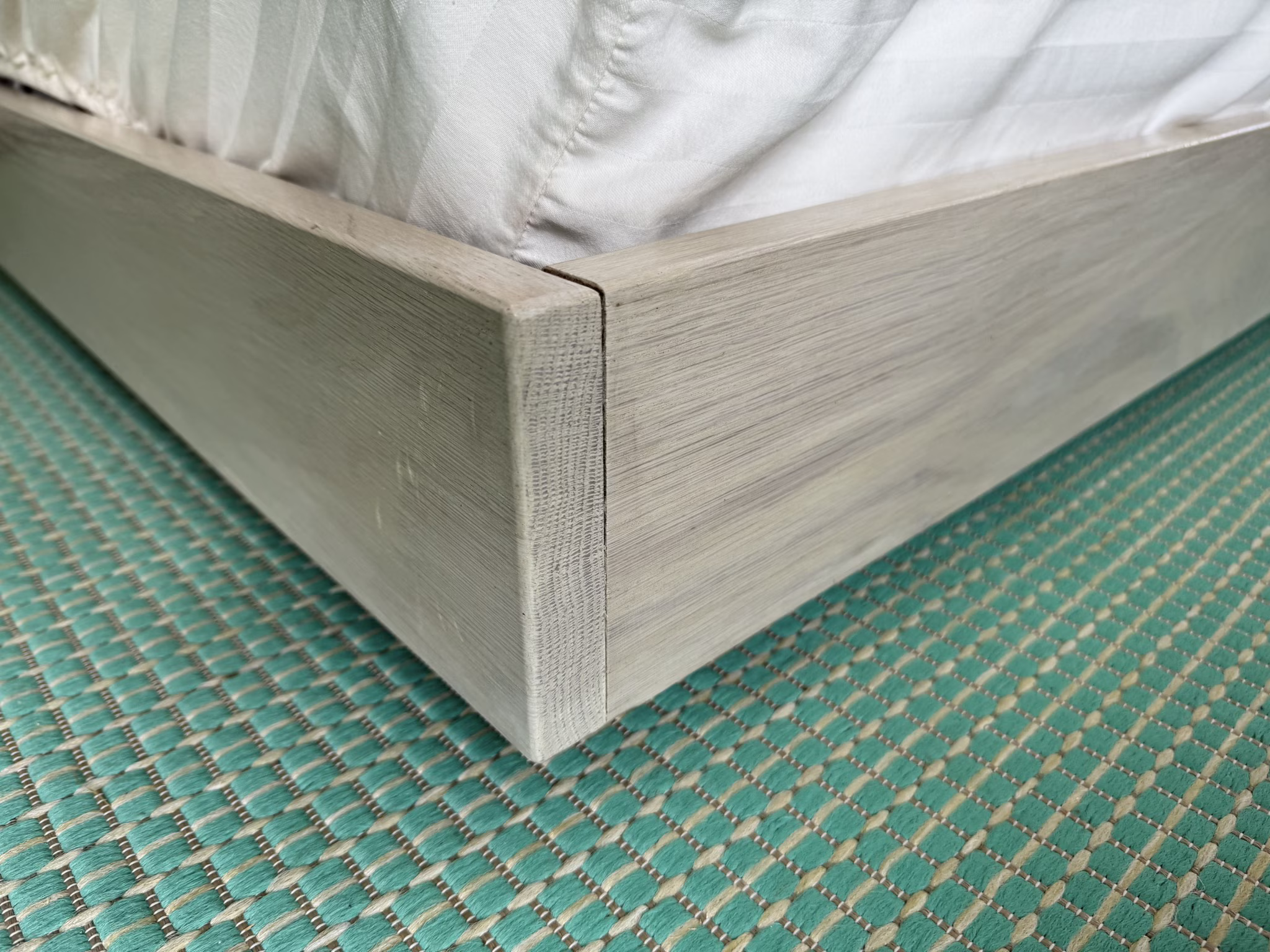 A slimmed down, low riding bedframe, made from white oak for our Gazebo out back
