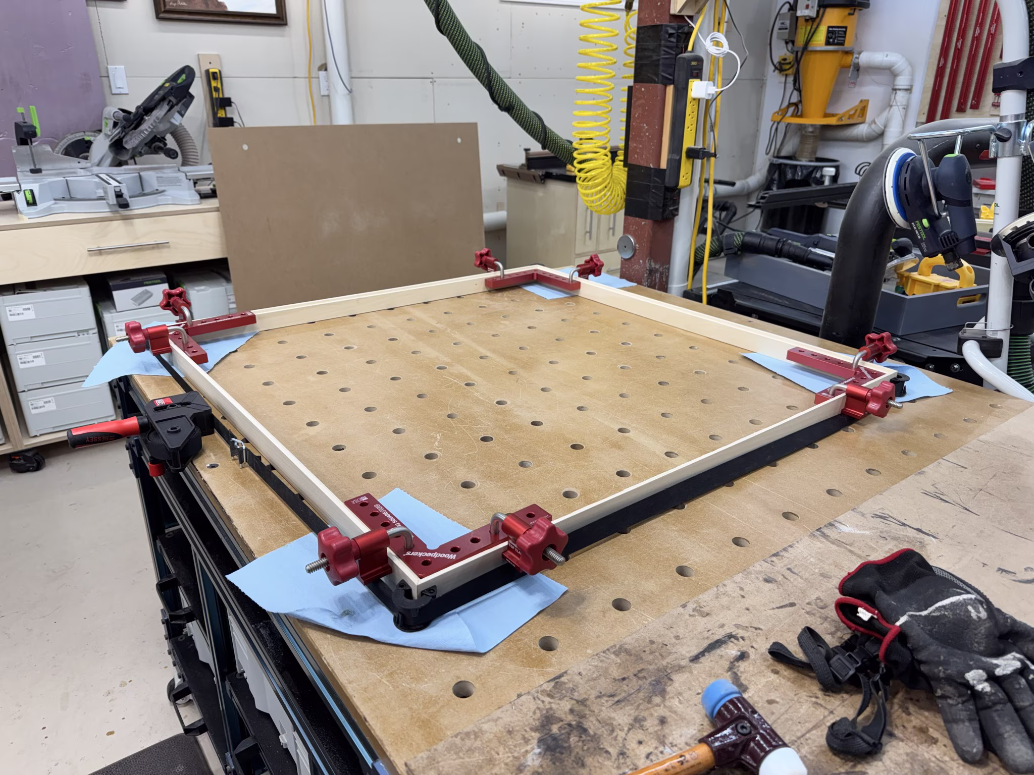 After milling the wood to size and cutting to length, it was time for glue-up and clamping.