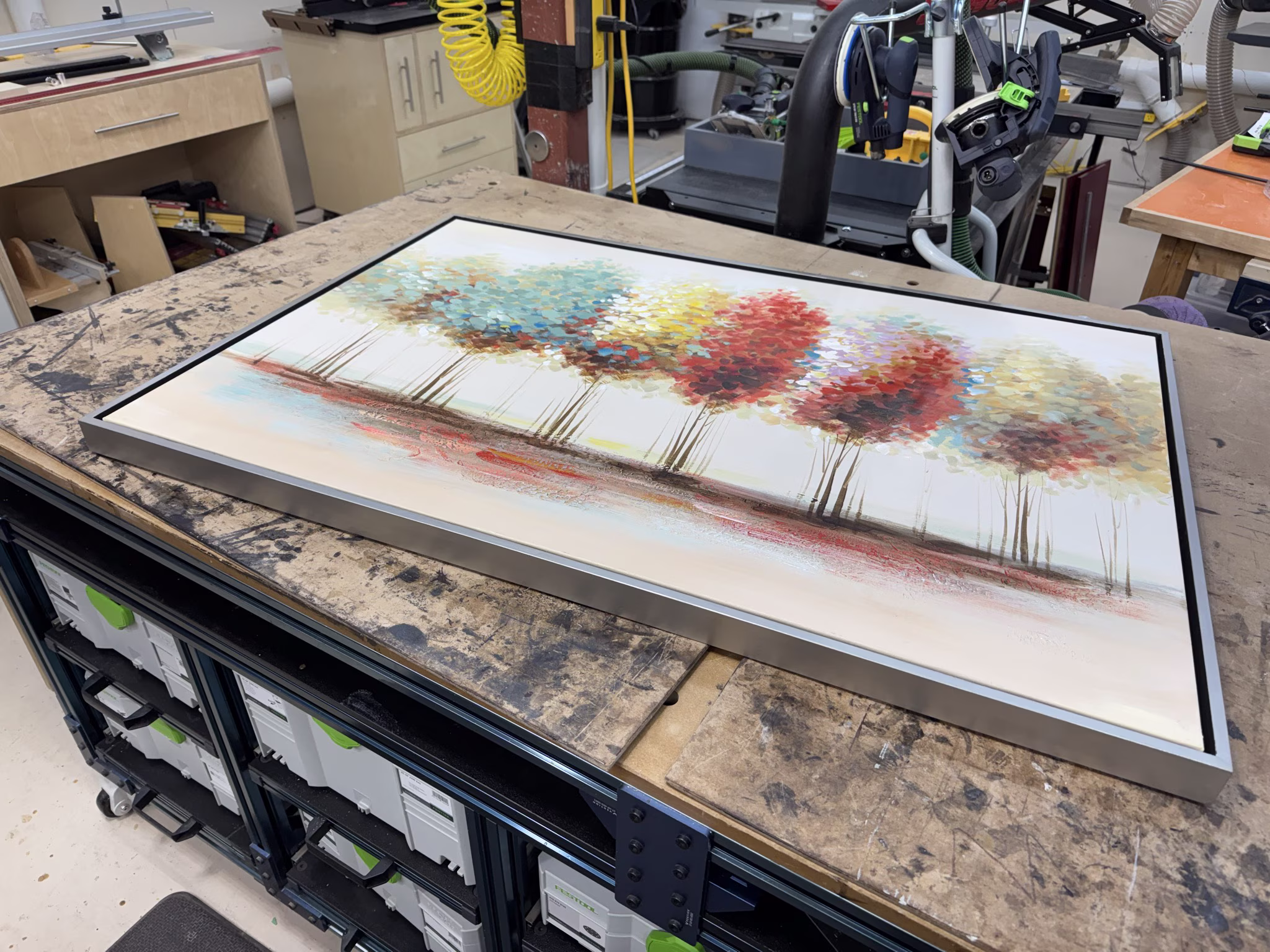 We’ve got some artwork around the place that needed some sprucing up. Some of it is good stuff, some of it is the kind that you buy at Home Sense. Either way, a nice frame can go a long way to making it look a notch or two better.