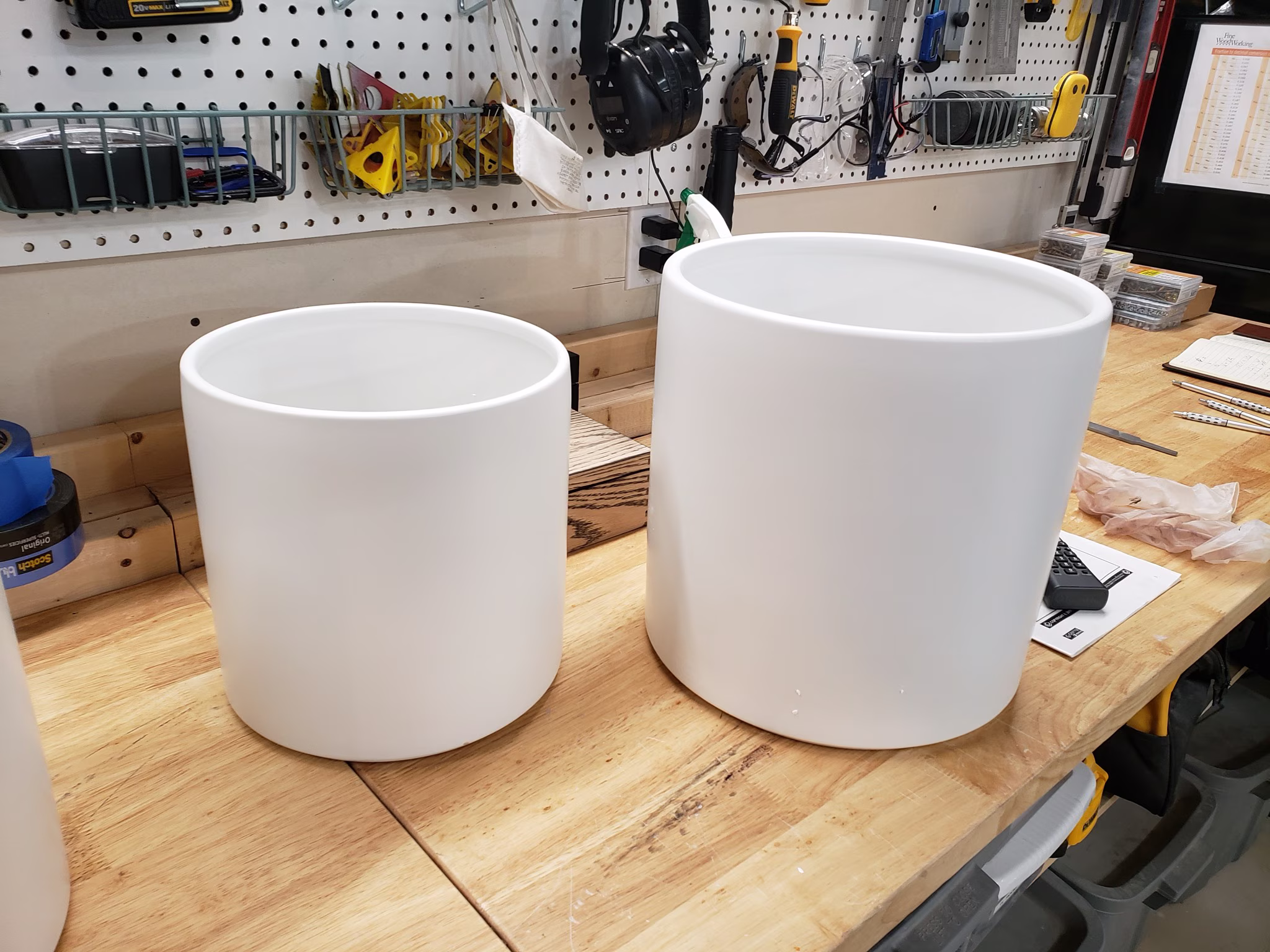 After a couple weeks of letting the ceramic cure, I put nice white glaze on them. Then I fired up the kiln and baked the pots at around 700 degrees F for about 4 hours, and they came out nice.