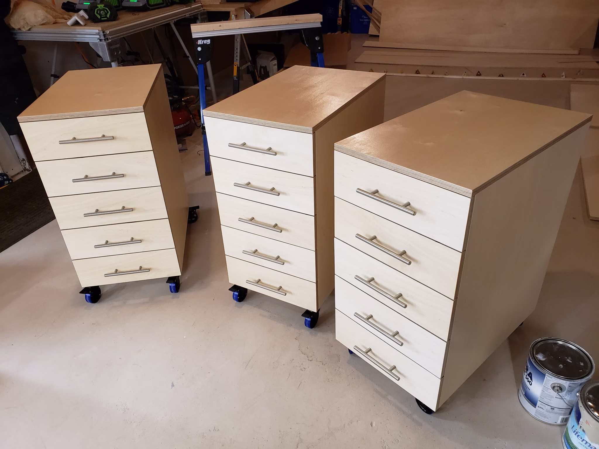 These were a lot of fun to make, and they turned out great for the most part. The drawer slides are a little bit fidgety, but they work.
