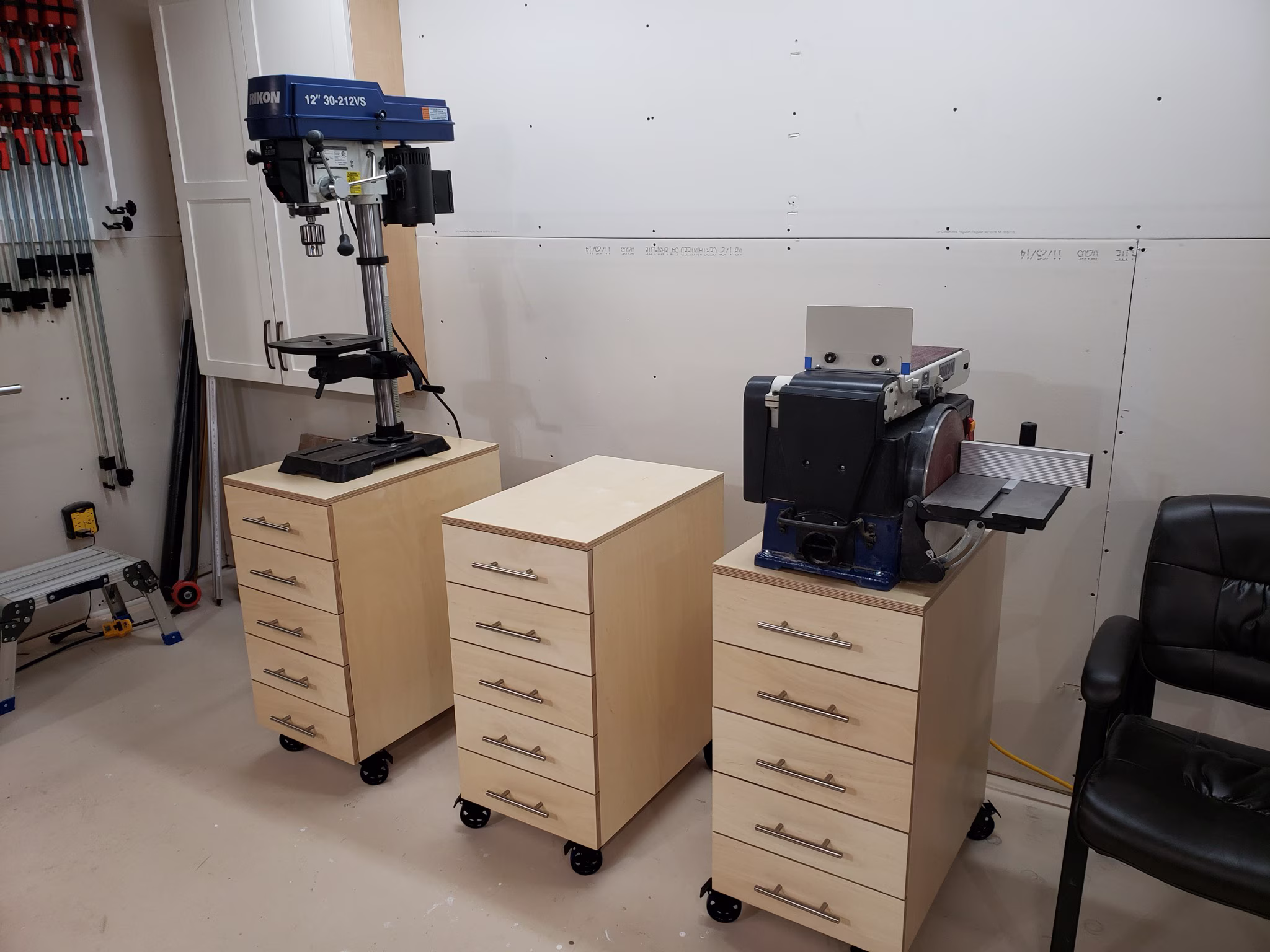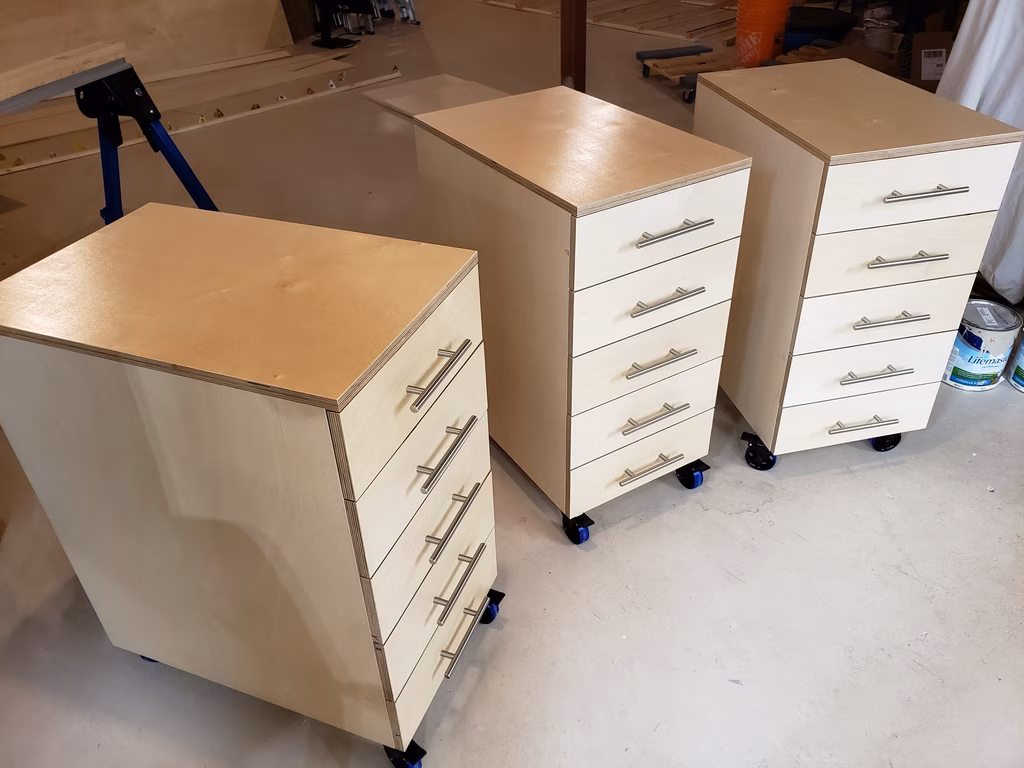 Three baltic-birch machine stands with 15 drawers