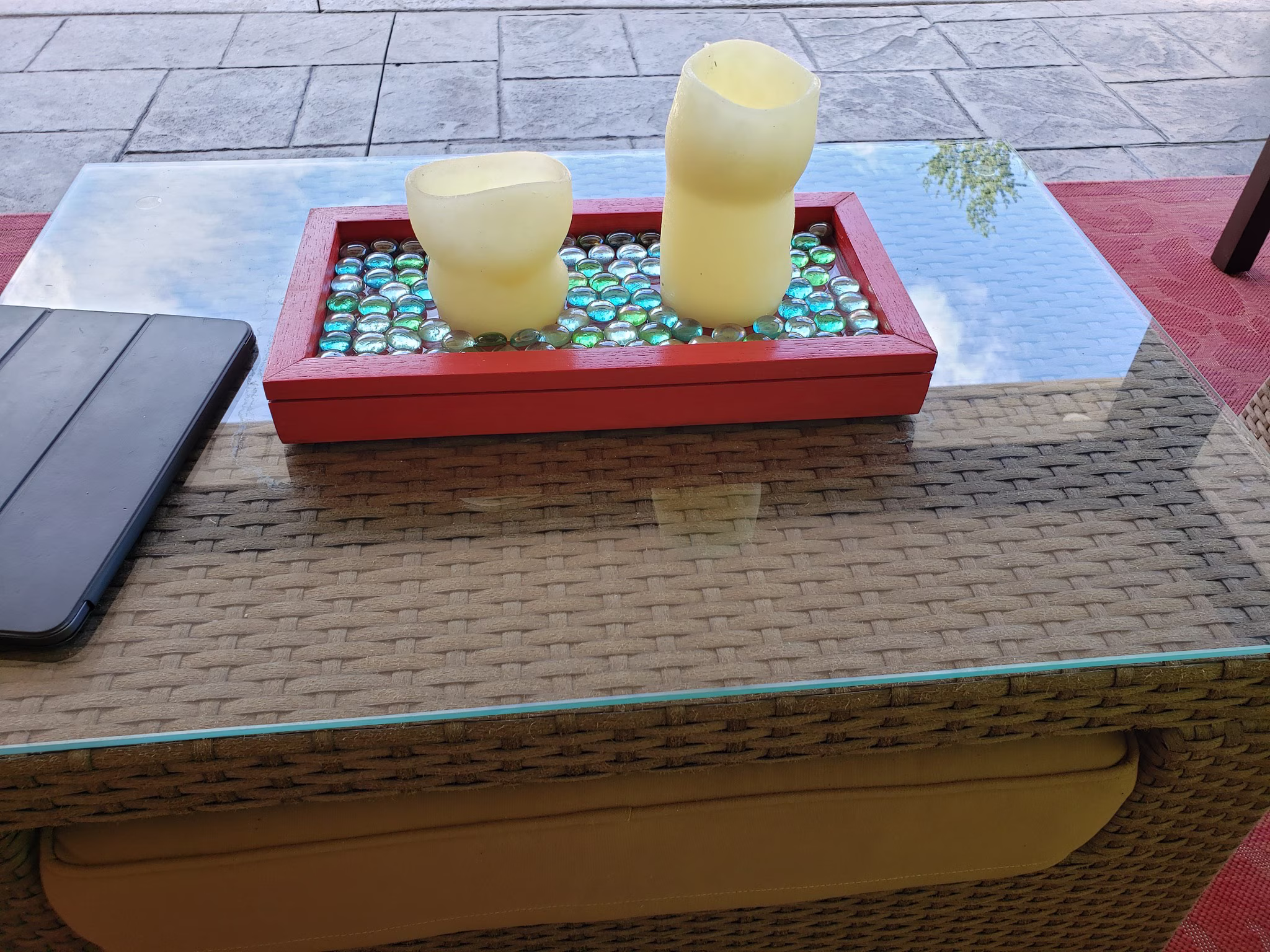 In my early versions of these, I made them entirely out of solid wood, mostly red oak. This is all good, but with the bottom made out of solid wood, well they are heavy. Too heavy in some cases. The one on the dining table is hard for me to lift. If I were to make these today, I would make the bottoms out of plywood, make thinner sides, and maybe even use a different wood to save on the weight.