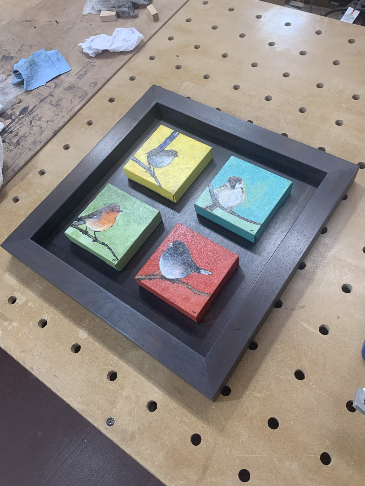 Pretty simple, only tricky part was mounting and positioning the individual pieces of artwork so that they could be screwed into the backing in the right spot.